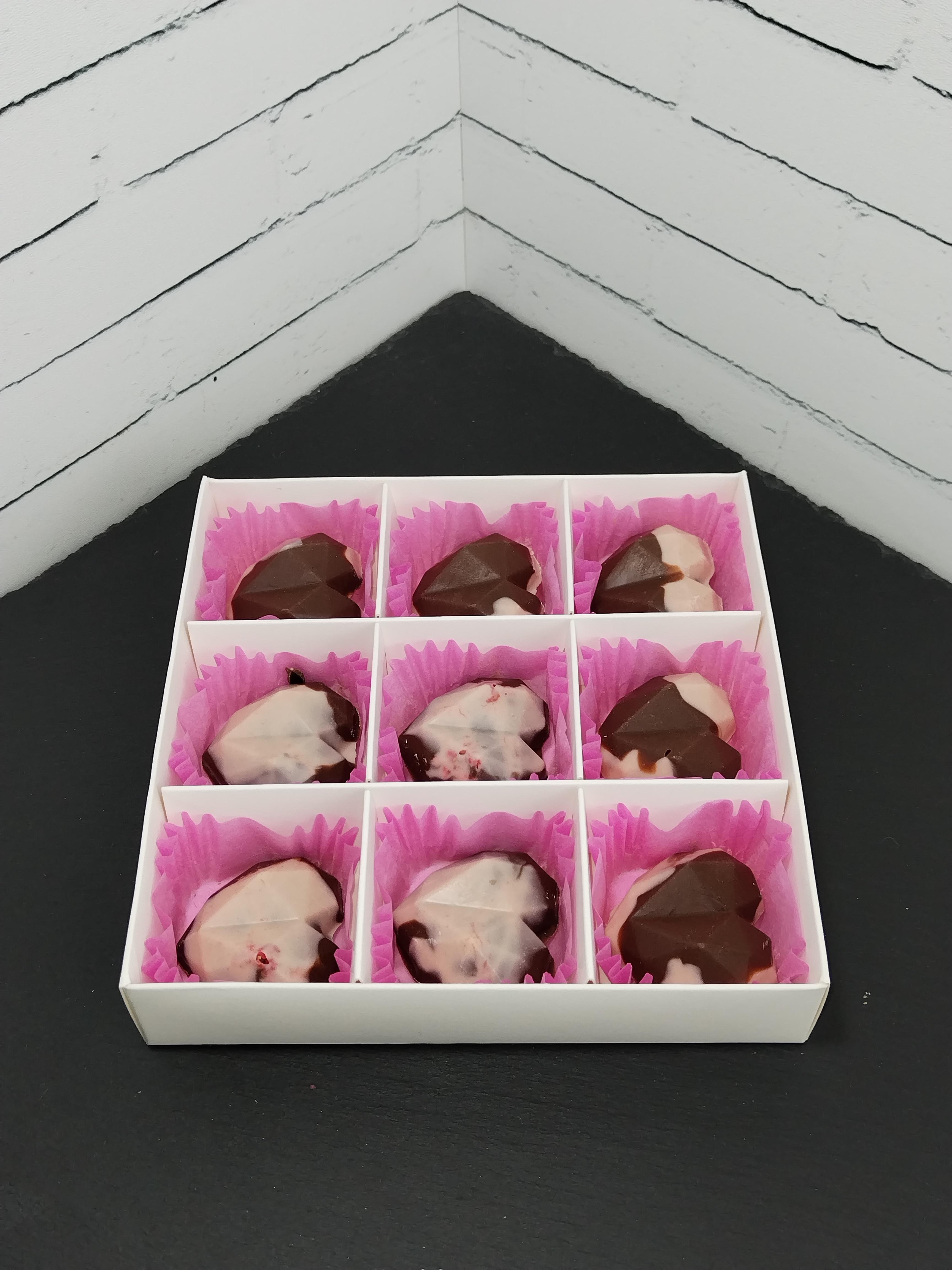 Набор конфет ручной работы без сахара из белого и молочного шоколада Barry Callebaut с добавлением маршмеллоу и клубники. Вес 130 грамм
