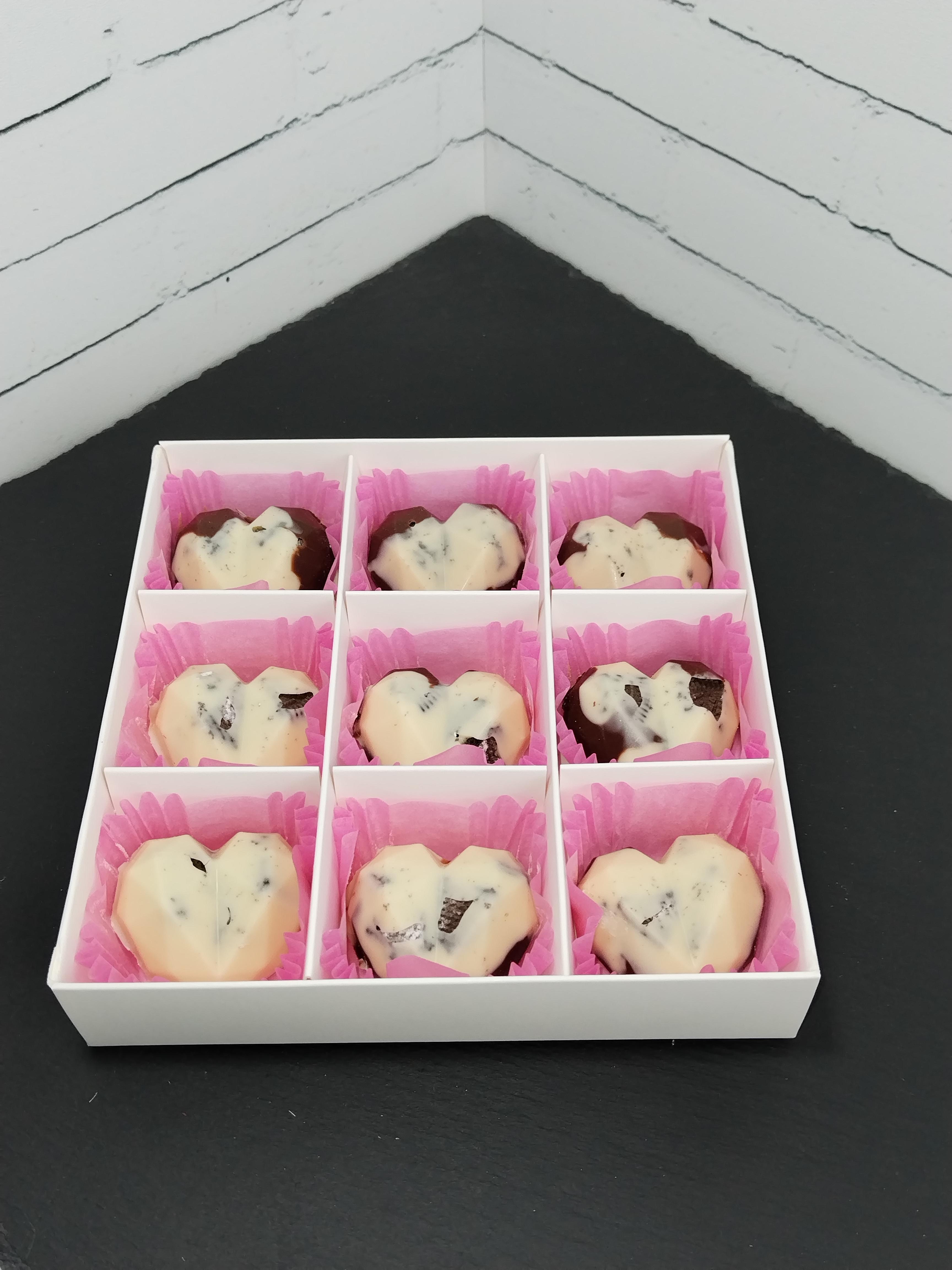 Конфеты в форме сердец из белого и молочного шоколада Barry Callebaut с добавлением печенья орео. Вес 130 грамм