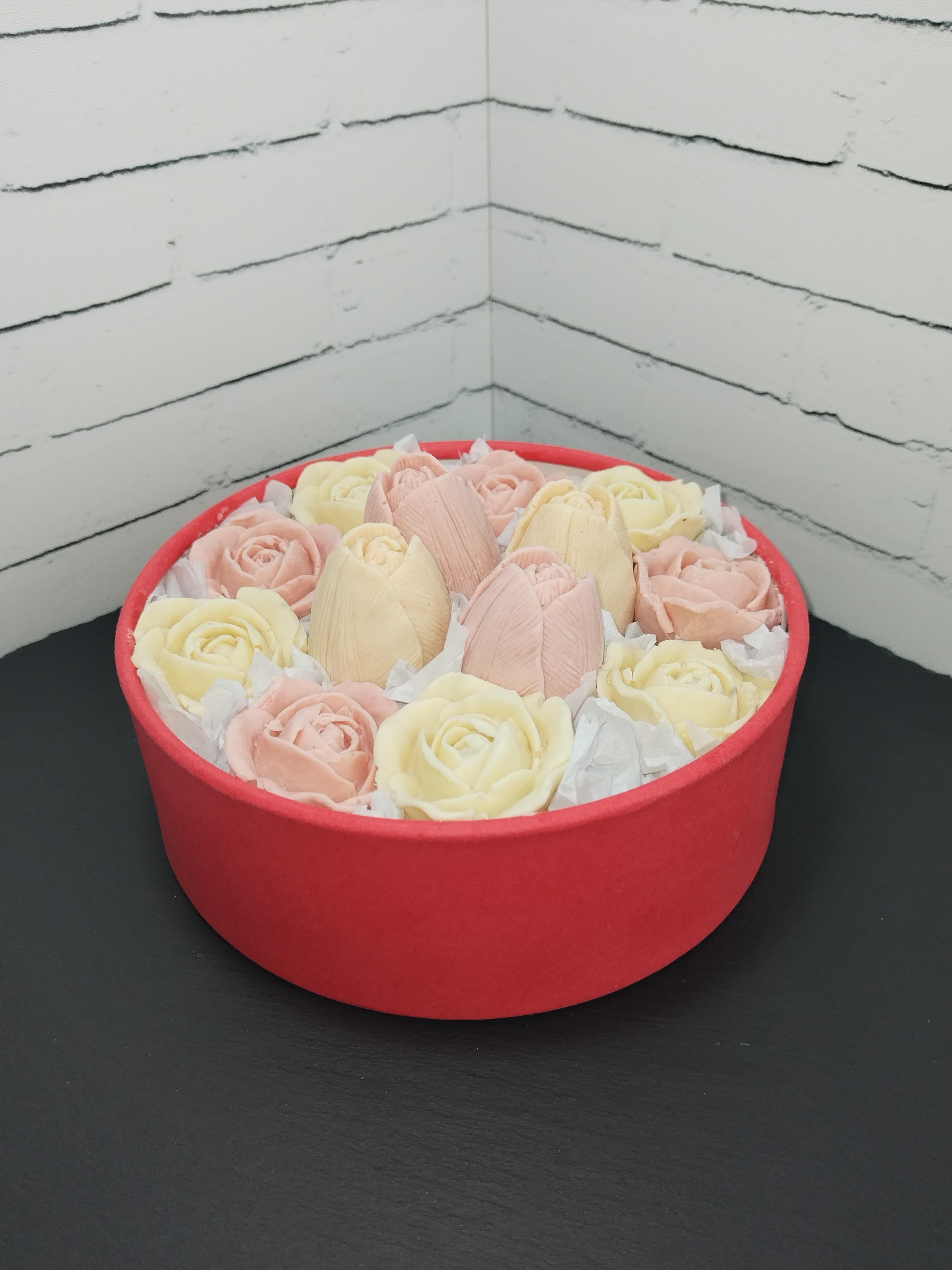 Коробочка с шоколадными цветами.