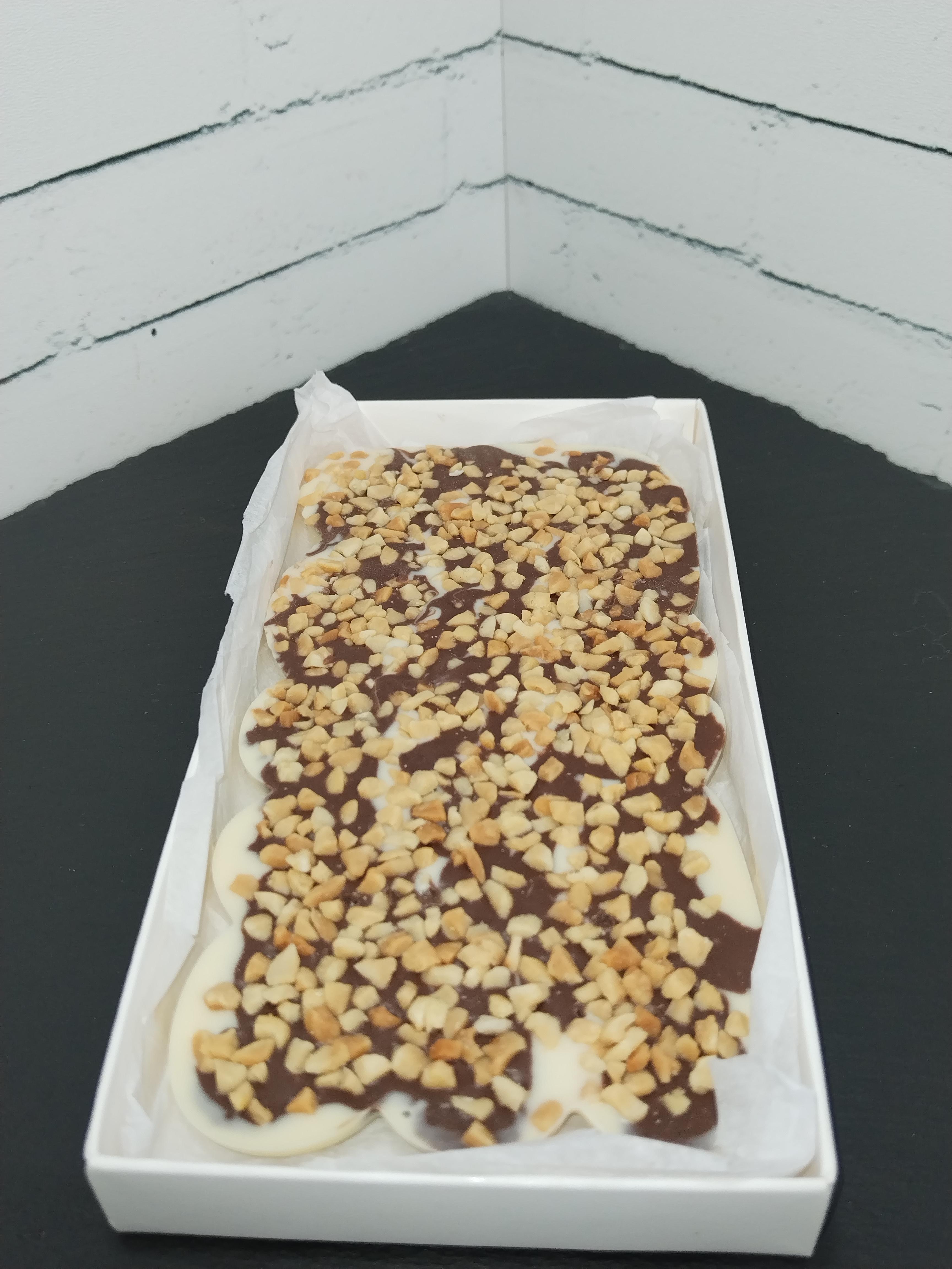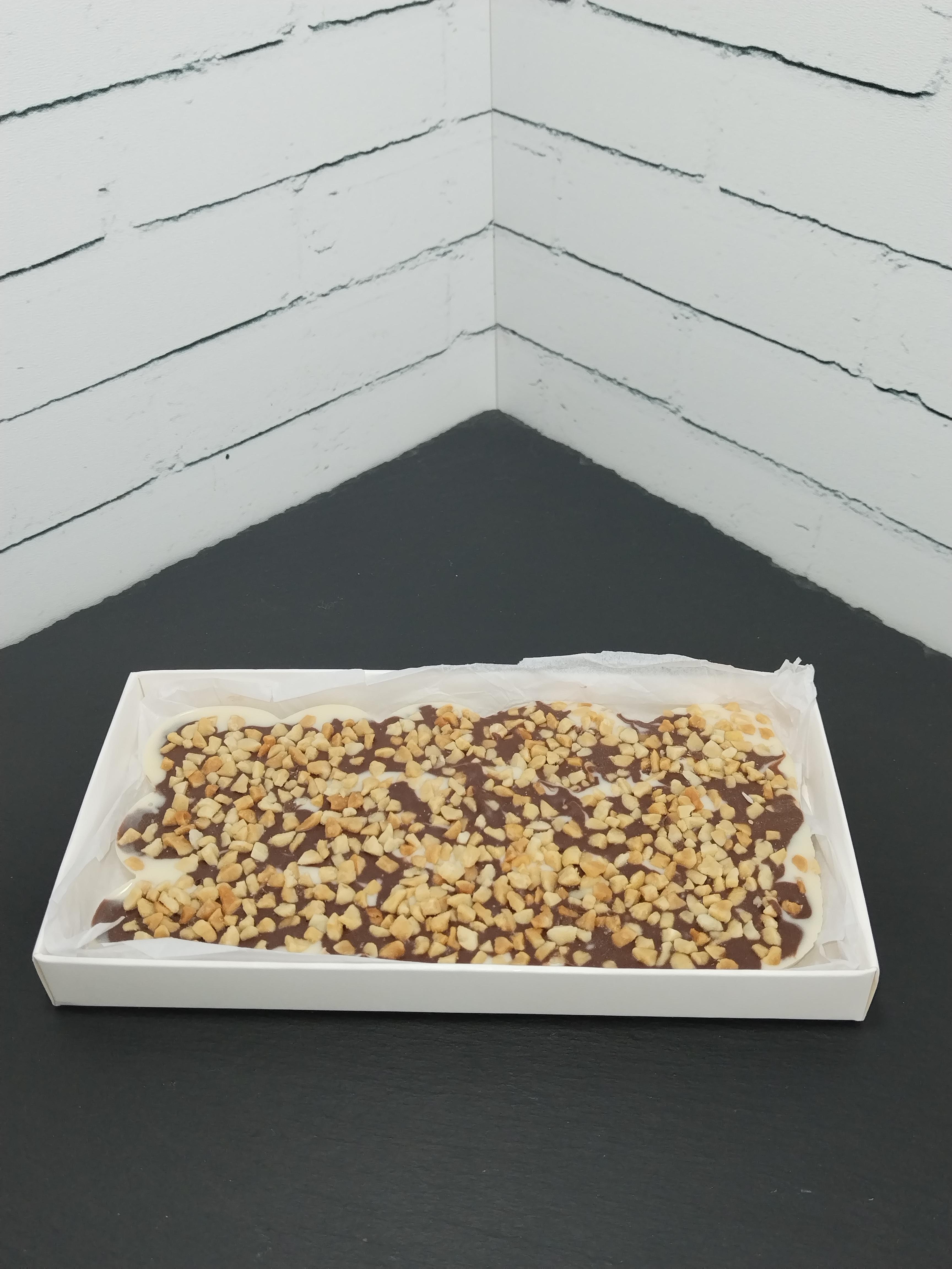 Плитка из молочного и белого шоколада с арахисом